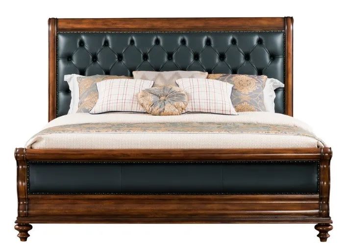 这款床整体相对简约,其床尾板相对较高,在生活中可以防止被子的滑落。雪橇床的舒适性就在于它的床屏有一个100度的仰角设计,当我们睡前看会电视或看书倚靠的时候会更舒适。